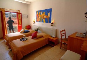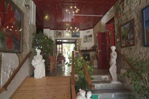 Hotel Kiniras (Traditional Hotel) - Ausstattung: Das Hotel verfügt über 18 Zimmer. Kleiner Empfangsbereich mit Rezeption, Bar, kleiner Aufenthaltsraum mit Kamin, Internetraum. Schön und geschmackvoll gestalteter Innenhof mit Bildergalerie, in dem man sich vom ersten Augenblick an wohlfühlt. Tagsüber ist die hoteleigene Cafeteria geöffnet.