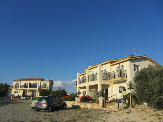 Nur 30 Meter vom Strand von Pissouri liegen die beiden Häuser Agamemnon mit je zwei Doppelhaushälften / Appartements für bis zu 6 Personen.