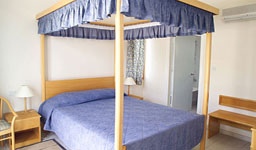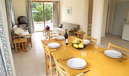 Hotel Natura Beach - VILLEN: Für 4-6 Personen. 2 o. 3 Schlafzimmer, jeweils mit Bad oder Dusche/WC, zusätzliches WC im Erdgeschoss, Wohnzimmer mit 2 Schlafcouchen, Essecke und offener Küchenzeile mit Backofen. Klimaanlage, Telefon, TV, Safe. Balkon und große Terrasse. Jedes der Häuser verfügt über einen eigenen Pool und Parkplatz.