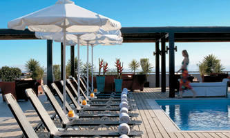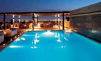 Hotel Athens Imperial - POOLBEREICH: Dachterrassen-Pool mit Panorama-Blick über Athen (wetterbedingt gefüllt).
