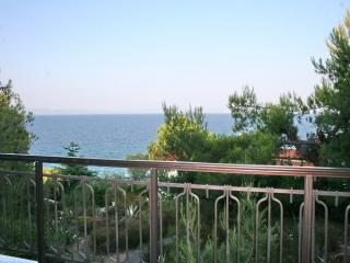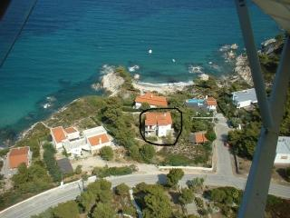 Das Haus steht ruhig und romantisch, inmitten eines mediterranen Naturgrundstücks, zwischen Pinienbäumen, mit schönem Meerblick auf die Siggitikos Bucht bis hin zum Heiligen Berg Athos. Das Grundstück des Hauses grenzt unmittelbar an das türkisfarbene Meer. Einzelhaus mit zwei Wohnungen (Erdgeschoß und 1 Etage) je mit separaten Eingängen. Die im OG befindliche Wohnung wird im Sommer, gelegentlich von der Deutsch- und Englisch sprechenden Eigentümerfamilie bewohnt.
