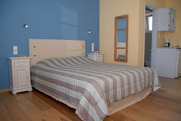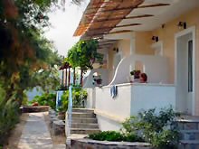 Im Erdgeschoss liegen nebeneinander drei Appartements, jeweils 2 Schlafzimmer, kleine Küche, Dusche/WC und Terrasse mit Meerblick. Die vier Studios im Obergeschoss und eins im Erdgeschoß bestehen aus einem Wohn-Schlafraum mit 2-3 Einzelbetten, Kochnische, Dusche/WC und Balkon/Terrasse mit Meerblick. Ausserdem gibt es eine geräumige Maisonettewohnung im Obergeschoss (für 4 Personen). Der hübsche Garten mit Gemeinschaftsterrasse steht allen Hausgästen zur Verfügung. Alle Wohnungen sind ausgestattet mit Klimaanlage, Telefon, Kaffeemaschine, Föhn, WLan und TV. Täglich kann im Garten das abwechslungsreiche Frühstück serviert werden.