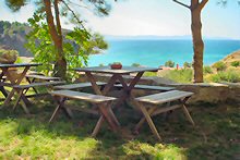 Die kleine Anlage ZORBAS liegt etwas erhöht über dem Meer in reizvoller ländlicher Umgebung. Die neun Wohnungen (für 2-4 Personen) sind gepflegt und vermitteln einen angenehmen Eindruck. Der freundliche Besitzer wohnt selbst in der Anlage und kümmert sich um das Wohl seiner Gäste. Einmal pro Woche begleitet er seine Gäste auf geführten Wanderungen. Yannis Zorbas ist Hobbyimker; interessierte Gäste können mit ihm zusammen die Bienenstöcke besichtigen (nur in der Vorsaison möglich).