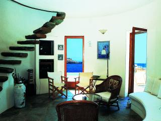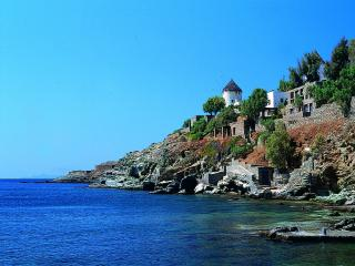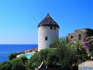 Das traumhafte, terrassenartig angeordnete Anwesen der komfortablen Villa Anemos liegt direkt oberhalb des Meeres. Auf dem etwa 1200 qm großen Grundstück befinden sich mehrere Gebäude, die zu der Villa gehören. Eine ausgebaute Mühle mit einem angefügten Haupthaus sowie zwei separate Gästehäuser aus Naturstein. Die großartige Lage des Grundstücks oberhalb des Meeres sowie die komfortable und geschmackvolle Einrichtung, die Gestaltung der Außenanlage mit schönen Blumen und Pflanzen geben der Villa ein einzigartiges Flair. Auf einer Gesamtwohnfläche von ca. 200 qm bietet die im Jahr 1998 restaurierte Villa mit Pool, Komfort und Platz für bis zu 10 Personen. Die ausgebaute Mühle ist auf der unteren Ebene mit dem Haupthaus verbunden, die Wohnräume gehen ineinander über. In den beiden oberen Stockwerken der Mühle befindet sich jeweils 1 Schlafzimmer mit eigenem Bad. Im EG-Bereich des Haupthauses liegt die gut ausgestattete Küche und ein Wohn-/Esszimmer, je mit eigenem Ausgang auf verschiedene überdachten Terrassen mit einmalig schönem Meerblick. Eine weitere ca. 40 qm große überdachte Terrasse seitlich vom Haupthaus ist mit Teakholzmöbeln und einem BBQ ausgestattet. Im OG des Haupthauses befindet sich ein Schlafzimmer mit angegliedertem Bad. Seitlich versetzt, unterhalb der Mühle, liegen die beiden kleinen Gästehäuser. Der Weg zu diesen führt über eine Treppe, vorbei an einer halbrunden Terrasse mit phantastischem Meerblick. Neben der Mühle befindet sich der ca. 30 qm große nierenförmige Pool, mit Sonnenliegen und -schirmen. Von der Terrasse aus hat man einen phantastischen Meerblick.
