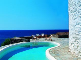 In exponierter, traumhafter Lage über dem Meer, komfortable Villa mit Pool, mit grandiosem Blick bei Koundouros.