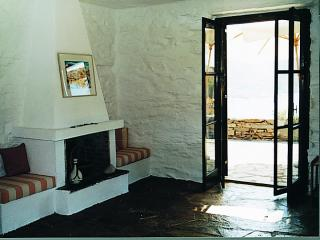 Das Ferienhaus liegt im Südwesten der Insel, mit herrlichem Blick auf die Ägäis, ca. 5 km von Poisses entfernt, auf einem großem Hanggrundstück. Alleinstehendes Haus, geschmackvoll und komfortabel eingerichtet, Baujahr 1989, renoviert 2006, ca. 70 qm Wohnfläche, 1 Schlafzimmer inmitten eines Garten- und Naturgrundstücks mit einer riesigen Terrasse und phantastischem Meerblick. Wohn-/Esszimmer mit Kamin, 2 gemauerte Bettcouchen, L-förmig im Raum angeordnet. Essbereich, offene Einbauküche mit E-Herd, Dunstabzug, Kühlschrank mit Gefrierfach, Kaffeemaschine. 1 Schlafzimmer mit 1 Doppelbett. Bad mit Dusche und WC. Von allen Räumen des Hauses direkter Zugang auf die ca. 150 qm große Terrasse mit herrlichem Meerblick, gemauerten Sitzbänken, Gartenmöbeln, Sonnenliegen und -schirm. BBQ. Ca. 1300 qm großes Garten- und Natur-Hanggrundstück. Parkplatz direkt am Haus.