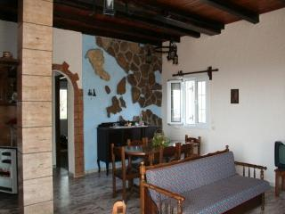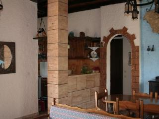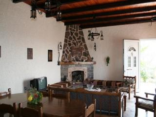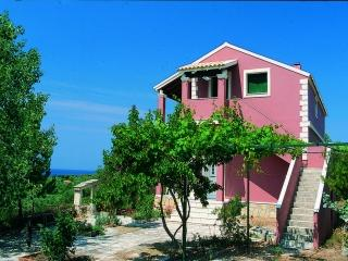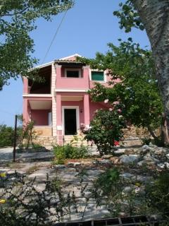 Einmalig schöne und ruhige Hügellage auf einem großen Grundstück mit Blick über die Olivenhaine, den Korrosionssee und das Meer. Zweigeschossiges Haus mit zwei Etagenwohnungen. Da das Obergeschoss des Hauses nicht genutzt wird, wohnen Sie alleine im EG des Hauses. Schön gestalteter Eingangsbereich mit vielen Blumen, Sträuchern und Bäumen. Alleinstehendes, zweckmäßiges Einzelhaus, Baujahr 2000, ca. 75 qm Wohnfläche, 2 Schlafzimmer, inmitten eines Gartengrundstücks mit phantastischem Meerblick. Wohn-/Esszimmer mit Kamin, 1 Bettcouch, angrenzende offene Küchenecke mit Theke, E-Herd, Dunstabzug, Kühlschrank mit Gefrierfach, Kaffeemaschine. 2 Schlafzimmer mit je 2 Einzelbetten. Bad mit Dusche und WC. Ca. 2500 qm großes Grundstück, ca. 15 qm überdachte Terrasse. Parkplatz am Haus. Außendusche. Heizung.