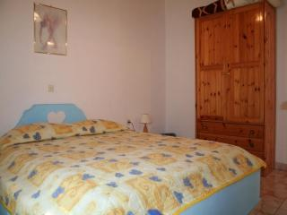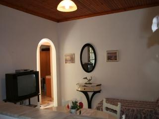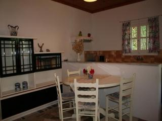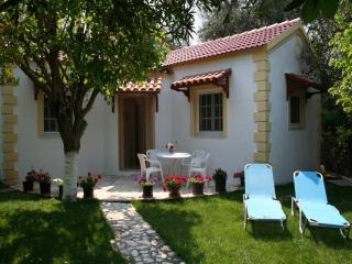 Einzelhaus in ruhiger, ländlicher Umgebung, unweit des schönen Natursandstrandes von Skidi. Alleinstehendes, gepflegtes und zweckmäßig eingerichtetes Einzelhaus, Baujahr 2004, ca. 70 qm Wohnfläche, 2 Schlafzimmer, auf einem kleinen, gepflegten und abgeschlossenen Gartengrundstück. Wohn-/Esszimmer mit SAT TV, 1 Bettcouch für 1 Person, angrenzend offene Küchenecke mit Theke, 3 E-Kochplatten, kleiner Backofen, Dunstabzug, Kühlschrank mit Gefrierschrank, Kaffeemaschine. 1 Schlafzimmer mit 1 Doppelbett (gemauert), 1 Schlafzimmer mit 2 gemauerten Einzelbetten. Bad mit Dusche und WC. Waschmaschine. Ca. 200 qm abgeschlossenes Rasen- und Gartengrundstück, Terrasse. Sonnenschirm, BBQ. Außendusche. Parkplatz am Haus.