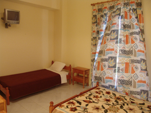 Die Appartements bestehen aus einem Schlafraum mit Doppelbett, einer Eß-Wohnküche mit 2 Einzelbetten, WC/Dusche und Balkon mit Meerblick.