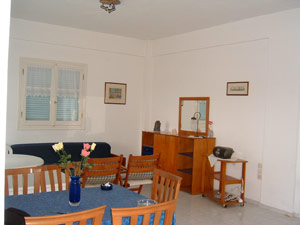 Das Haus Livadi ist geeignet für 6 Personen und befindet sich in sehr ruhiger, grüner Umgebung. Es sind circa 300 m zum Sandstrand. . Tavernen und Restaurants finden Sie am Alykesstrand in etwa 300-500 m Entfernung. Hier gibt es auch Sonnenschirme und Liegen. Im Erdgeschoß befinden sich: 1 x Essraum mit Kochnische, ein Wohnzimmer mit Sofabett, DU/WC sowie ein Schlafzimmer (2 x EB). Im Obergeschoß befinden sich: 1 x Schlafzimmer (2 x EB + 1 x Sofabett), 1 x Schlafzimmer (1 x DB und 2 x Babybetten), DU/WC. Wir empfehlen aufgrund der Entfernung zum Ort einen Mietwagen.
