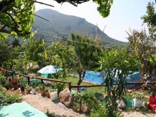 Inmitten von Weinbergen gelegenes alleinstehendes Doppelhaus mit einer zusätzlichen ganzjährig vermieteten separaten Wohnung. Doppelhaus mit je ca. 40 qm Wohnfläche, 2 kleine Durchgangsschlafzimmer mit je 2 Einzelbetten. Separate kleine Stehküche mit 2 E-Platten, Backofen, Kühlschrank, Kaffeemaschine. Bad mit Dusche und WC. Überdachte Terrassen. Parkplatz am Haus.