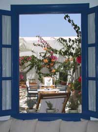 Ein kleines und gepflegtes Inselrefugium im ansprechenden Kykladenstil. Mit viel Gefühl zum Detail und netten, mediterranen Akzenten geschmackvoll dekoriert. Sehr liebevoll und persönlich von der sympathischen Familie geführt, daher wird dieses Urlaubsidyll bei vielen Stammgästen als Geheimtipp angesehen. Kleiner, gemütlich und ansprechend eingerichteter Aufenthaltsraum mit Rezeption (Safe), Satelliten-TV, Bar und hübscher Innenhof mit Sitzgelegenheiten - eine lauschige Oase mit Blumen und südländischem Flair.