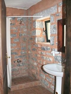 SUPMA001- 011: Geschmackvoll eingerichtete, komfortable und sehr gepflegte Studios für je 2 bis 4 Personen, Baujahr 1999, ca. 40 qm Wohnfläche, 1 Raum. Bedingt durch die Hanglage des Grundstückes sind alle Studios sehr gut voneinander separiert und jeweils mit ebenerdigem Eingang. Wohn-/Schlafraum mit Kamin, 2 Bettcouches bzw. gemauerte Sitzbänke (2,20 x 0,90 m), TV, angrenzend offene Küchenecke mit 2 E-Kochplatten, Dunstabzug, Kühlschrank mit Gefrierfach, Kaffeemaschine. 1 Doppelbett. Bad mit Dusche und WC. Teils überdachte Terrasse mit Meerblick und schönen Gartenmöbeln. Parkplatz am Haus. Außendusche, Sonnenschirme und Sonnenliegen am Pool. Klimaanlage und Zentralheizung inklusive.