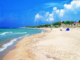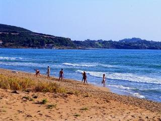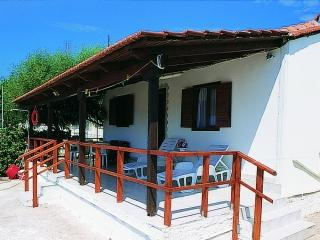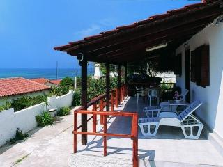 Einfaches Strandhaus in zweiter Reihe, oberhalb des schönen Sandstrandes von Aghios Ilias, mit schönem Meerblick. Einzelhaus, Baujahr 1992, ca. 50 qm Wohnfläche, 3 Schlafzimmer, auf kleinem Grundstück mit Meerblick. Wohnküche mit angrenzender Küchenecke mit Theke, 3 E-Kochplatten, kleiner Backofen, Kühlschrank mit Gefrierfach, Kaffeemaschine. 3 Schlafzimmer mit je 2 Einzelbetten. Bad mit Dusche und WC. Abgeschlossenes Grundstück, ca. 110 qm, überdachte Terrasse mit Meerblick. Parkplatz am Haus. Außendusche.