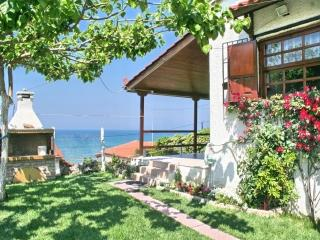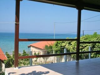 Komfortables Einzelhaus in direkter Meerlage, zusammen mit einigen Ferienhäusern auf leichtem Hügel mit wunderschönem Blick auf das Ionische Meer.