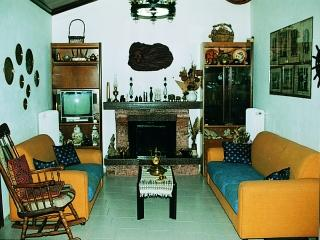 Am Meer liegendes Haus zusammen in einer Reihe mit anderen Sommerhäusern, in leichter Hanglage oberhalb des schönen Sandstrandes von Aghios Ilias. Alleinstehendes, komfortables Einzelhaus, Baujahr 1990, ca. 60 qm Wohnfläche, 2 Schlafzimmer, kleines, gepflegtes Rasen- und Gartengrundstück mit sehr schönem Blick auf das blaue Meer. Wohn-/Esszimmer mit Kamin, 1 Zustellbett für 1 Kind möglich, angrenzend offene Küche, E-Herd, Mikrowelle, Dunstabzug, Kühlschrank mit Gefrierfach, Geschirrspüler, Kaffeemaschine. 1 Schlafzimmer mit 1 Doppelbett, 1 Schlafzimmer mit 2 Einzelbetten. Bad mit Dusche und WC, Waschmaschine. Ca. 150 qm abgeschlossenes Gartengrundstück, ca. 30 qm große überdachte Terrasse mit wunderschönem Blick auf das Meer. Parkplatz am Haus. BBQ. Außendusche. Heizung.
