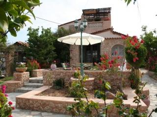 Alleinstehendes Haus mit 2 Maisonetten. Am Zipfel eines Hügels mit weiten Ausblicken auf die Porto Cheli Bucht und mit einem phantastischem weiten 180-Grad-Blick von der zweiten Maisonette auf die Inseln Hydra und Dokos bis hin nach Ermioni und Koilada.