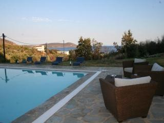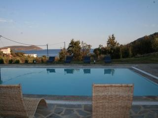 Am Rande des Ortes Skoutari mit weitem, freien Blick über das Meer liegt dieses gepflegte Anwesen mit 3 sehr schön gebauten Steinhäusern u. gemeinsamen Pool. Geschmackvoll eingerichtet und komfortablen Einzelhäuser auf 4000 qm großem Rasengrundstück.