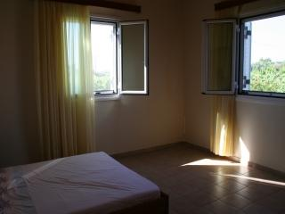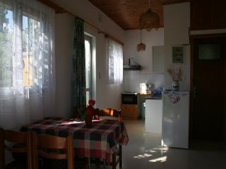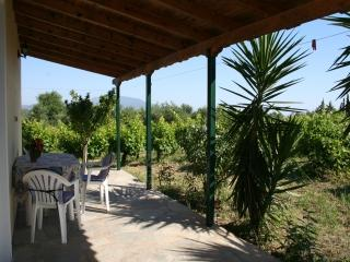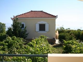 SWPHG001: ( 2* ) Alleinstehendes, einfaches Ferienhaus, Baujahr 1986, ca. 50 qm Wohnfläche, 2 Schlafzimmer, umgeben von Weinstöcken und zahlreichen Pflanzen, ruhig und idyllisch gelegen. Küche mit 3 E-Kochplatten, kleiner Backofen, Dunstabzug, Kühlschrank, Kaffeemaschine. 1 Schlafzimmer mit 1 Doppelbett, 1 Schlafzimmer mit 2 Einzelbetten. Bad mit Dusche und WC. Ca. 500 qm Naturgrundstück, überdachte Terrasse. Parkplatz am Haus.
