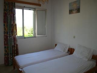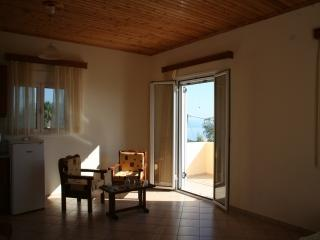 SWPHG003+04: ( 3* ) Jeweils alleinstehendes, gepflegtes und zweckmäßig eingerichtetes Einzelhaus, Baujahr 2002, ca. 65 qm Wohnfläche, 1 Schlafzimmer, umgeben von Weinstöcken und zahlreichen Pflanzen, ruhig und idyllisch gelegen auf einem Weinbergplateau mit Meerblick. Wohn-/Esszimmer mit 2 Einzelbetten, angrenzende Küchenecke mit 3 E-Kochplatten, kleinem Backofen, Dunstabzug, Kühlschrank, Kaffeemaschine. 1 Schlafzimmer mit 1 Doppelbett (bei 004 ist das Bett 1,40 m breit) und 1 Zustellbett für 1 Person möglich. Bad mit Wanne und WC. Ca. 1000 qm Naturgrundstück, große Terrasse mit sehr schönem Blick aufs Meer. Parkplatz am Haus. Außendusche. Fliegenschutzgitter an allen Fenstern und Balkontüren. Sonnenschirm.