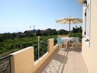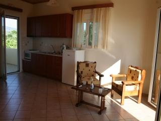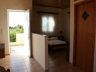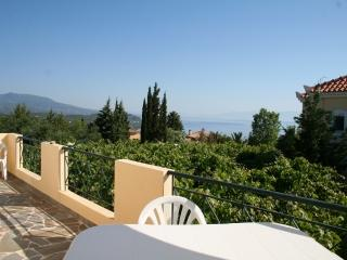 SWPHG002: ( 3* ) Alleinstehendes, gepflegtes und zweckmäßig eingerichtetes Studio, Baujahr 2000, ca. 45 qm Wohnfläche, 1 Raum, umgeben von Weinstöcken und zahlreichen Pflanzen, ruhig und idyllisch gelegen auf einem Weinbergplateau mit weitem Blick auf das Meer. Wohn-/Schlafraum mit angrenzender Küchenecke mit 2 E-Kochplatten, kleinem Backofen, Dunstabzug, Kühlschrank, Kaffeemaschine. 1 Doppelbett und 1 Einzelbett. Bad mit Wanne und WC. Ca. 500 qm Naturgrundstück, große Terrasse mit sehr schönem Meerblick. Parkplatz am Haus. Fliegenschutzgitter an allen Fenstern und Balkontüren. Sonnenschirm.