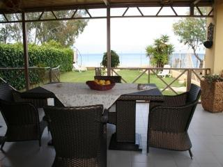 Alleinstehende, komfortable und gepflegte EG-Wohnung, Baujahr 1992, ca. 125 qm Wohnfläche, 2 Schlafzimmer, inmitten eines Rasen- und Gartengrundstücks in direkter Meerlage, durch das Gartentor ebenerdiger Zugang zum Strand. Wohn-/Esszimmer mit Kamin, SAT TV, DVD-Player, 1 Bettcouch. Angrenzend zum Wohnzimmer halboffene Küche mit Theke, E-Herd, Mikrowelle, Kühlschrank mit Gefrierfach, Geschirrspüler, Kaffeemaschine. Besonders aufwendig sortiert das Ess- und Küchensortiment dieses Hauses. 1 Schlafzimmer mit 1 Doppelbett, 1 Schlafzimmer mit 2 Einzelbetten, je mit Moskitonetzen über den Betten. Bad mit Wanne und WC. Waschmaschine. Ca. 600 qm Rasengrundstück, ca. 60 qm große, überdachte Terrasse mit Meerblick. Außendusche. BBQ. Parkplatz am Haus. Sehr schöne konfortable Gartenmöbel.