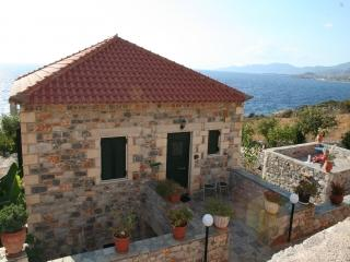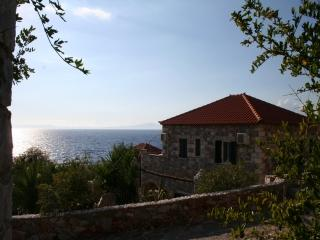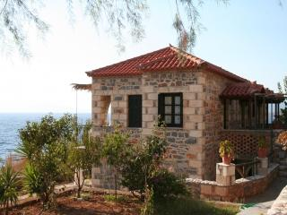 Auf einem riesigen Hanggrundstück in einmaliger Lage über dem Meer, architektonisch maniatischen Steinhäusern nachempfunden, zerstreut auf dem schön angelegten Garten, mit weitem Blick über die Messinische Bucht, traumhaft idylisch gelegen.