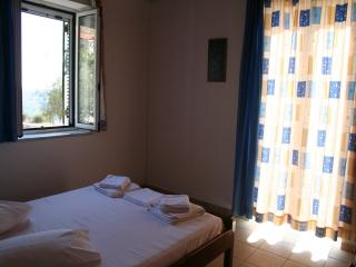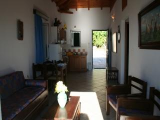 SUPAGA01-02:Komfortabel eingerichtete Einzelhäuser für je 4 bis 6 Personen, Baujahr 2002, ca. 70 qm Wohnfläche, 2 Schlafzimmer, inmitten eines schön angelegten Gartengrundstücks mit vielen mediterranen Blumen und Pflanzen und einmaligem Meerblick. Sonnenuntergangsseite. Wohn-/Esszimmer mit 1 Bettcouch für 2 Personen, angrenzende offene Küchenecke mit 3 E-Platten, Mini-Backofen, Dunstabzug, Kühlschrank mit Gefrierfach, Kaffeemaschine. 1 Schlafzimmer mit 1 Doppelbett, 1 Schlafzimmer mit 2 Einzelbetten. Bad mit Dusche und WC. Ca. 30 qm große, teils überdachte Terrasse mit herrlichem Blick aufs Meer. Parkplatz auf dem Grundstück. Außendusche.Klimaanlage inklusive.