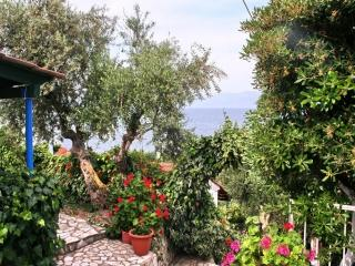 Die 7 alleinstehenden Bungalows sind terrassenförmig angeordnet und liegen oberhalb des Naturkiesstrandes von Chrani, umgeben von Olivenbäumen, mit phantastischem Meerblick. 1 Bungalow wird nur zum Aufbewahren der Wäsche genutzt.