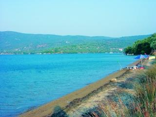 Strand: schmaler Natursandstrand nach ca. 500 m, nach ca. 1,5 km bei Marathia feiner Kiesstrand.