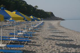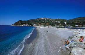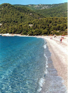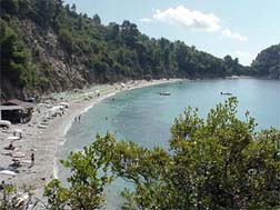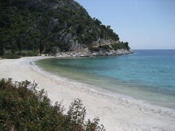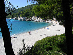 Die Sporadeninsel ist sehr grün und hat wunderschöne Badebuchten. Besonders an der West- und Südküste findet man herrliche Sand- und Kiesstrände.