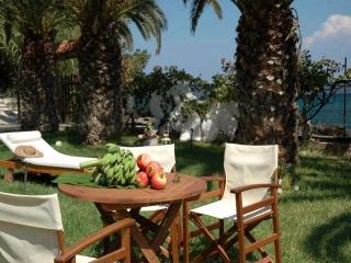 Ca. 1,5 km von Alykanas entfernt liegt das Haus CALYPSO bestehend aus 6 sehr geschmackvoll eingerichteten Wohnungen. In einmalig schöner direkter Meereslage auf einem riesigen, ca. 10.000 qm grossem Natur-, Rasen- und Gartengrundstück mit direktem Zugang zum Strand bietet das Haus seinen Gästen Ruhe, Entspannung und jeglichen Komfort. Der Garten des Hauses mit Sonnenschirmen und –liegen steht zur gemeinsamen Benutzung allen Gästen zur Verfügung .