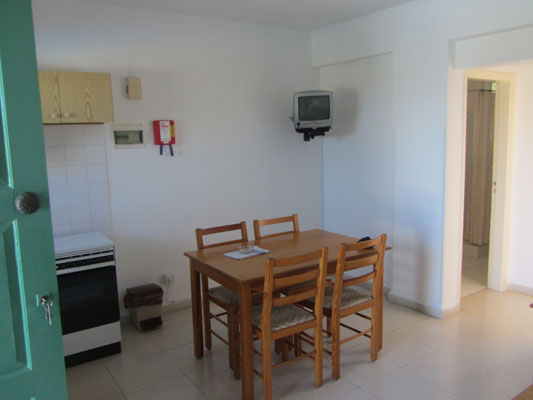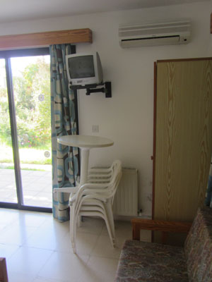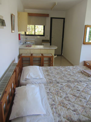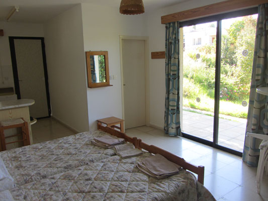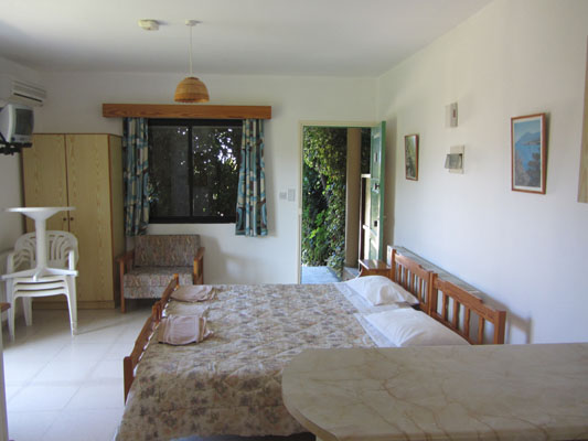 Die 4 Studios eignen sich für bis z u3 Personen und verfügen über einen Wohnschlafraum mit Kochnische, Balkon, Bad, TV und Klimaanlage (gegen Gebühr vort Ort: 6€ / Tag).
