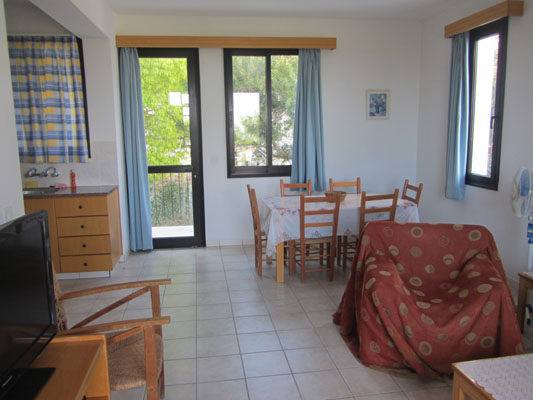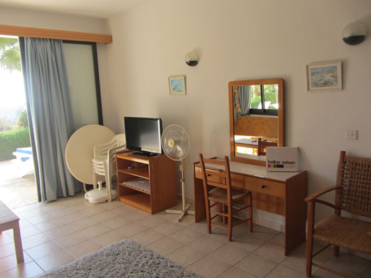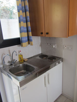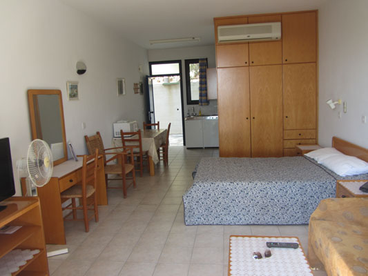 Alle sehr gepflegten Einheiten verfügen über eine Kitchenette mit Kaffeemaschine, Mikrowelle, mindestens zwei Kochplatten, Kühlschrank und Wasserkocher. Ausserdem sind eine Terrasse / Balkon, Klimaanlage, Ventilator, Flachbildfernseher (griechisch- und englischsprachige Sender), Bad mit Wanne und Sonnenliegen vorhanden.
